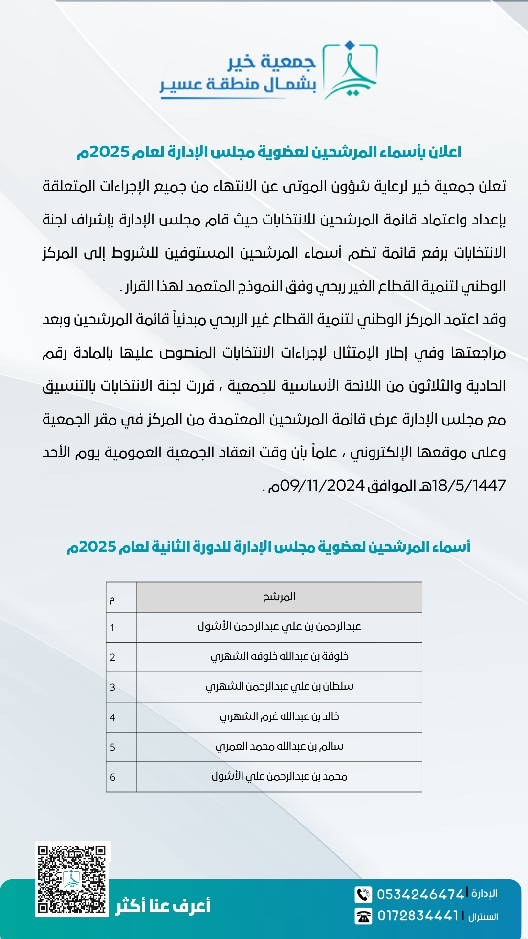 اليوم الثلاثاء الموافق 20/11/1445 قمت بزيارة لمقر جمعية خير بمحافظة النماص